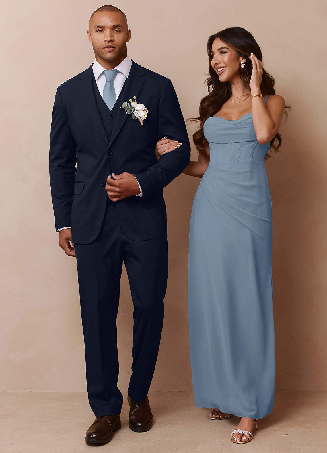 Savile Navy Blue Wool Blend 3-Piece Suit