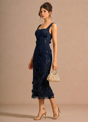 azazie Zarelle Navy Midi Dress