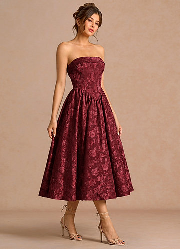 azazie Briac Wine A-line Midi Dress