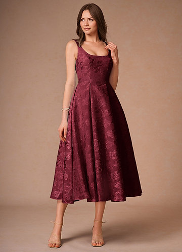 azazie Briac Wine A-line Midi Dress