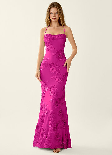 azazie Wrenana Fuchsia Textured Floral Jacquard Prom Dress