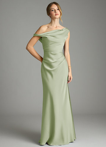 Dusty Sage Mermaid Off the Shoulder Stretch Satin Dress