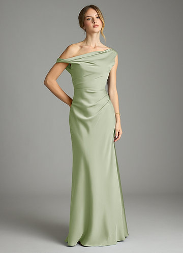 Dusty Sage A-Line One Shoulder Stretch Satin Dress