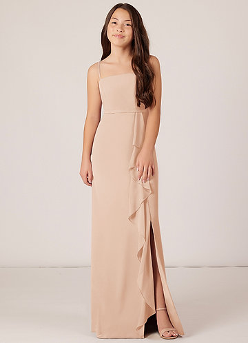 Azazie Mai Junior Sunset Sheath Pleated Chiffon Dress