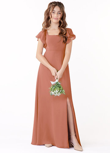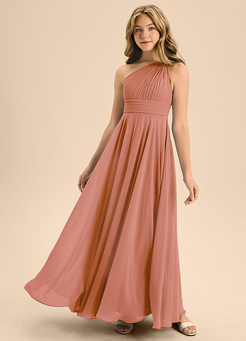 Azazie Kaylee Junior English Rose A-Line with Belt Chiffon Dress