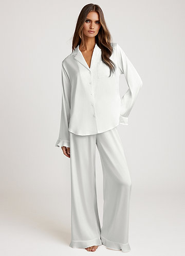 azazie White Satin Contrast Piping Pajama Set