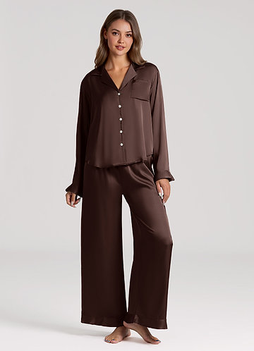 azazie Ganache Ruffled Satin Long Sleeve Pajama Set