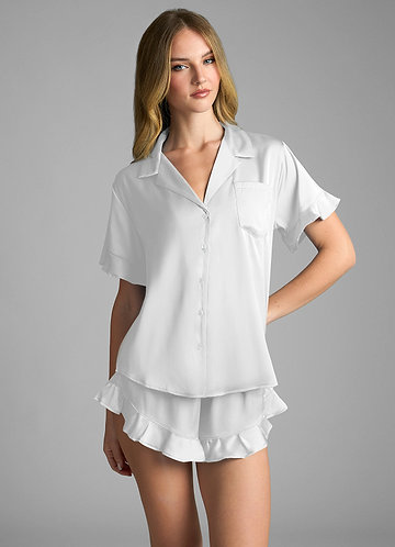 azazie White Ruffled Satin Long Sleeve Pajama Set