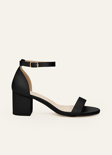 Matching Color Matte Satin Ankle Strap Block Heel Sandals