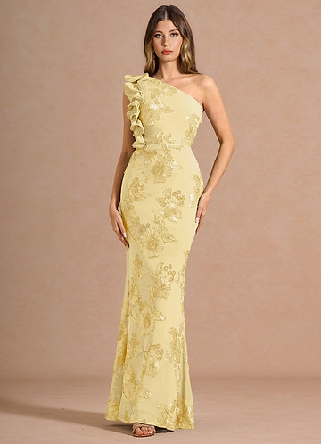 azazie Jezebel Lemon Sorbet Maxi Dress