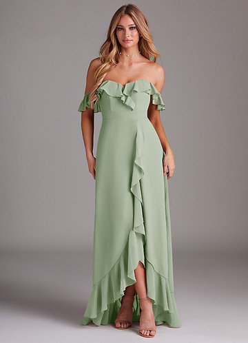 Dusty Blue A-Line Ruffled Chiffon Dress