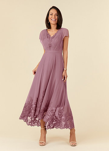 Grape A-Line V-Neck Pleated Chiffon Dress