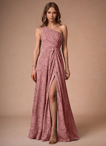 azazie Hermosa Light Pink One Shoulder Maxi Dress