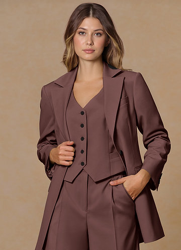 azazie Amelia Burgundy Refined Weave Performance Oversized Blazer
