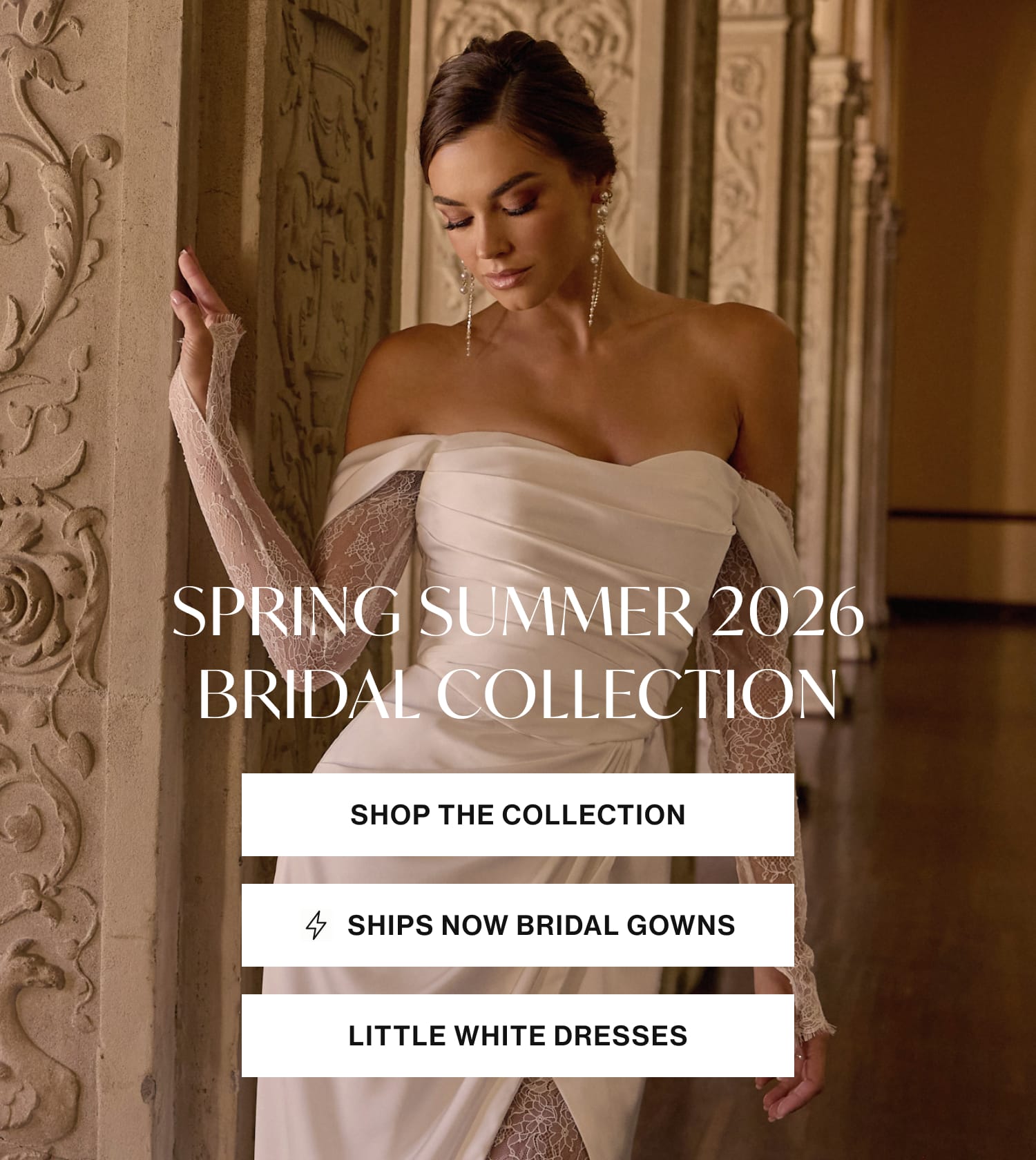 Complete your bridal look with our exquisite collection of wedding accessories. From elegant veils to sparkling jewelry and delicate shoes, we have everything you need to make your wedding look perfect and sparkling.