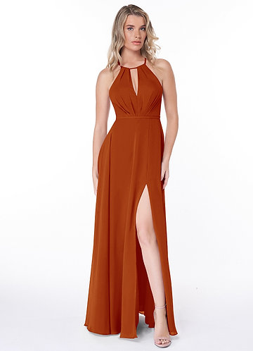Azazie Lani Stretch Terracotta A-Line Flounce Sleeve Stretch Satin Dress