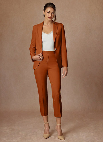 azazie Kennedy Burnt Orange Refined Weave Performance Pants Suit
