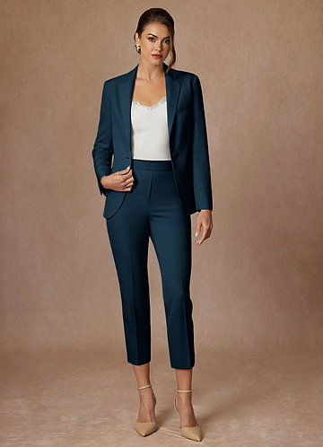 azazie Kennedy Dark Navy Refined Weave Performance Pants Suit