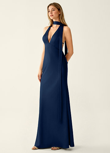 azazie Titania Flåde Satin V-hals Flæset Gallakjole