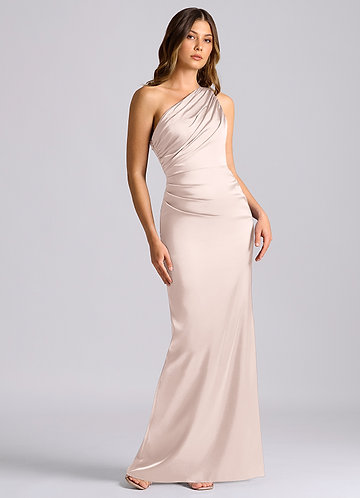 Havfrue En skulder Stræk satin Gulv-længde Kjole