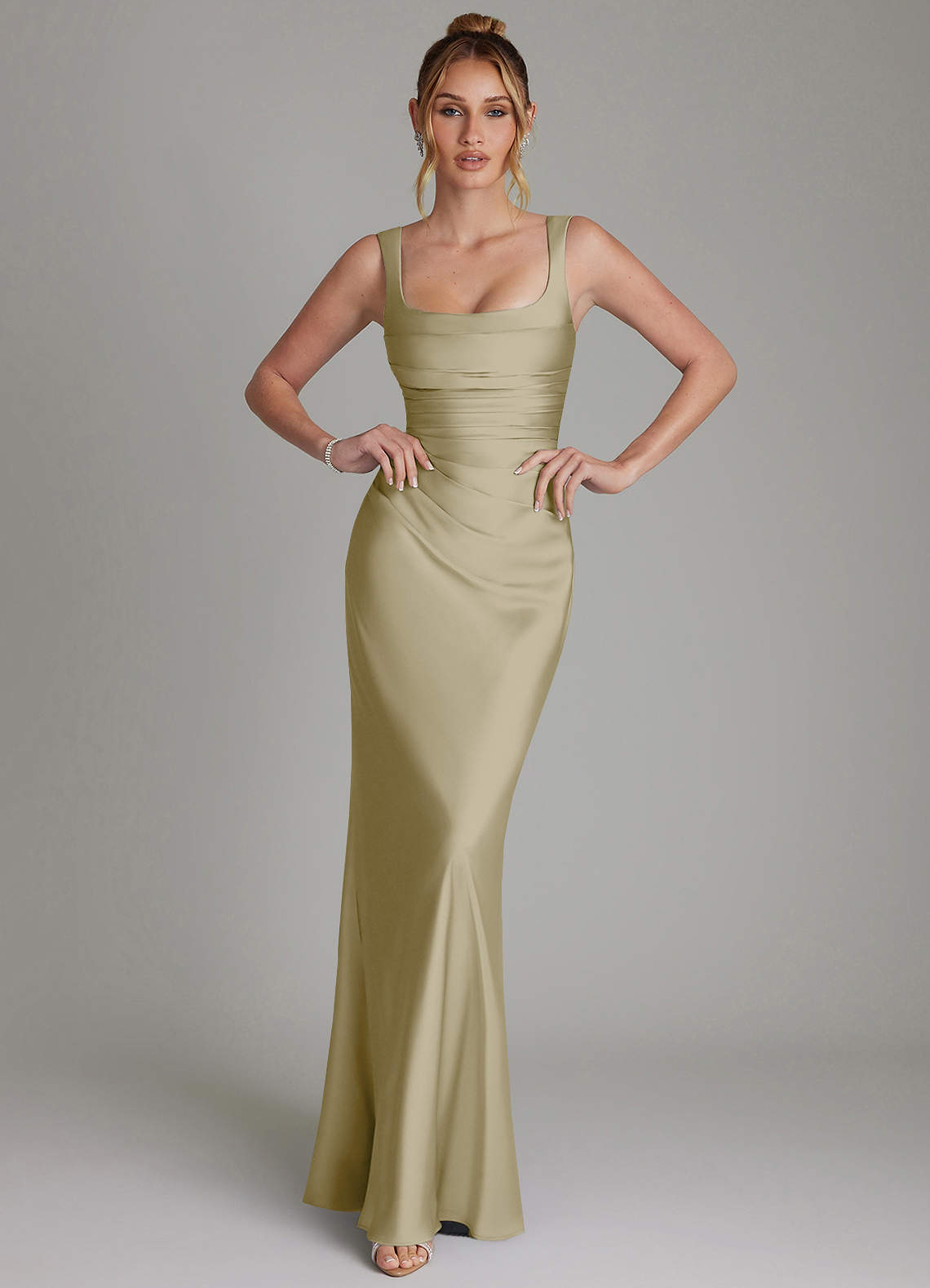 Havfrue Korset Stræk satin Gulv-længde Kjole