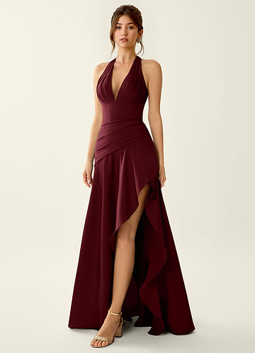 Starlit Burgunderrot Ballkleid mit Wasserfallausschnitt Stretch