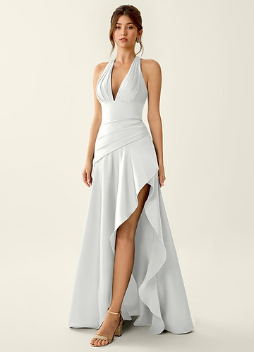 Titania Weiß Satin-Abendkleid mit V-Ausschnitt und Rüschen