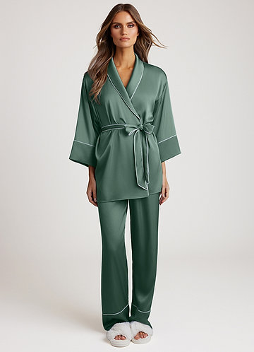 azazie Eukalyptus Pyjama-Set mit Satinbesatz