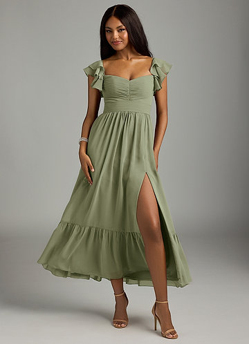 Azazie Bondi Dusty Sage A-Line Ruched Chiffon Dress