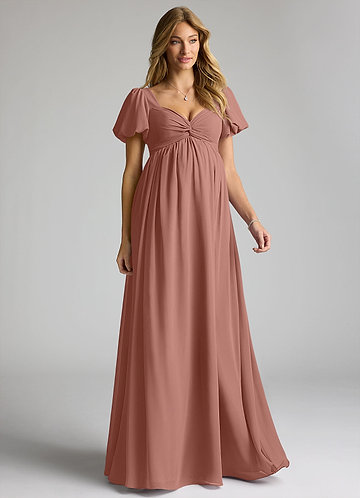 Vestido de Corte en A Plisado Hasta el suelo Gasa