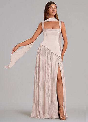 Vestido de Rosa Rubor de Satén Elástico de Corte en A con Plisado