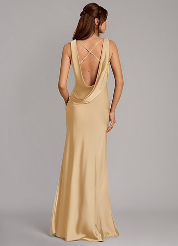 Vestido de Oro de Satén Elástico de Corte Sirena