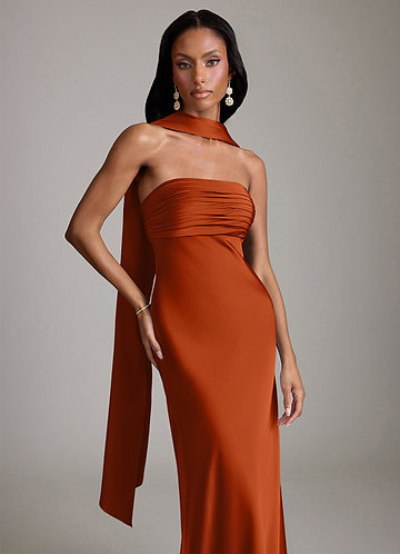 Vestido de Naranja Quemada de Satén Elástico de Corte Sirena Convertible con Sin tirantes