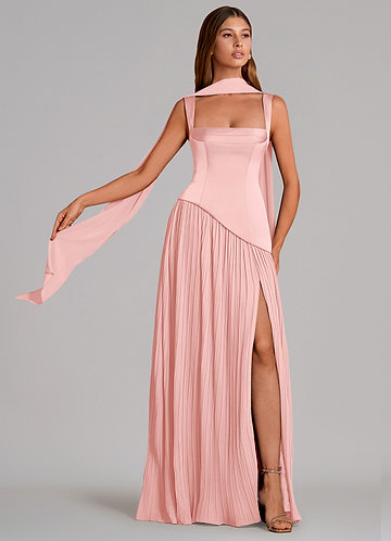 Vestido de Rosa Rubor de Gasa de Corte en A con Plisado
