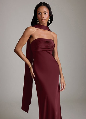 Vestido de Cabernet de Satén Elástico de Corte Sirena con Sin tirantes