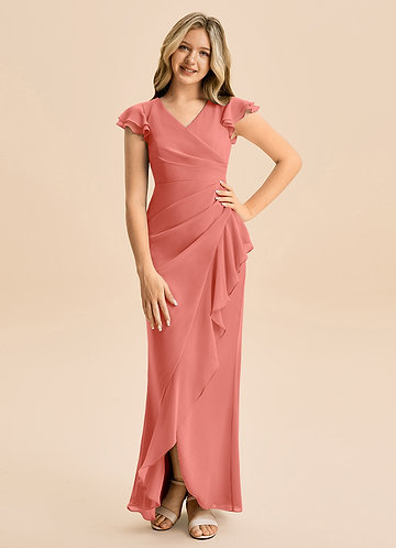 Vestido de Rosa Salmón de Gasa de Corte Sirena con Volante