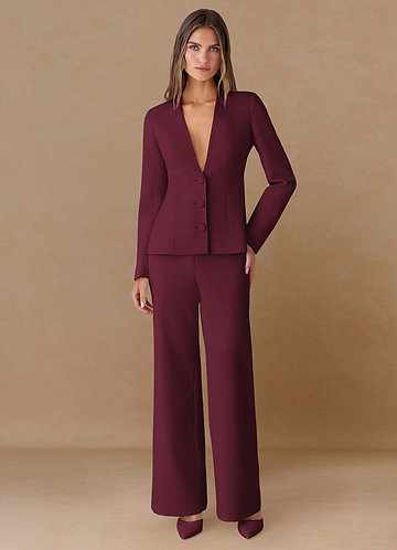 azazie Kennedy Borgoña Traje de pantalón de alto rendimiento con tejido refinado