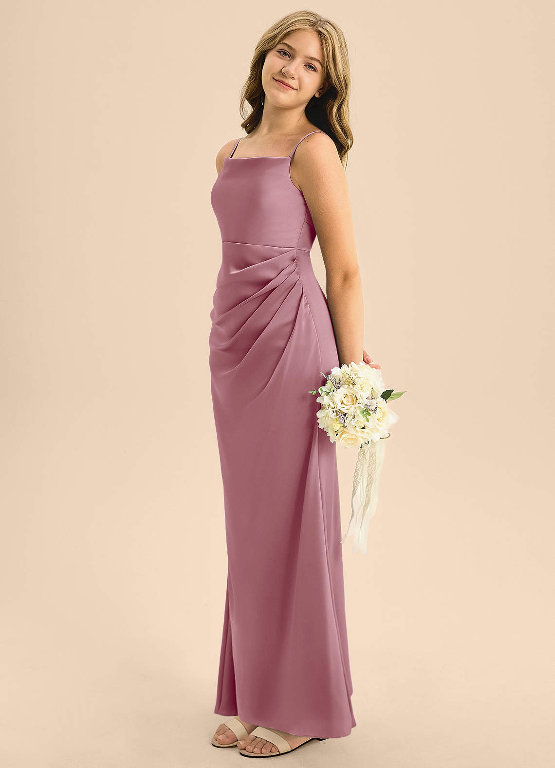 Vestido de Malva Vintage de Satén Elástico de Corte en A con Plisado