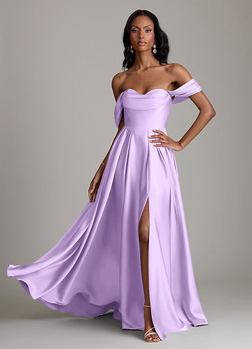 A-linja Olkapään ulkopuolella Joustava satiini Lattian pituus Pukeutua