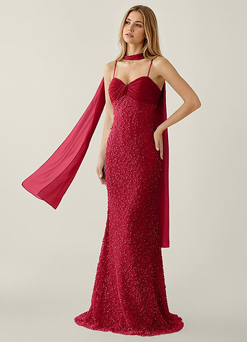 azazie Willone Bourgogne Robe de bal sirène à sequins brodés