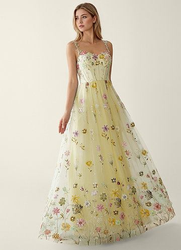 azazie Thyme Jaune Robe de bal trapèze à fleurs 3D