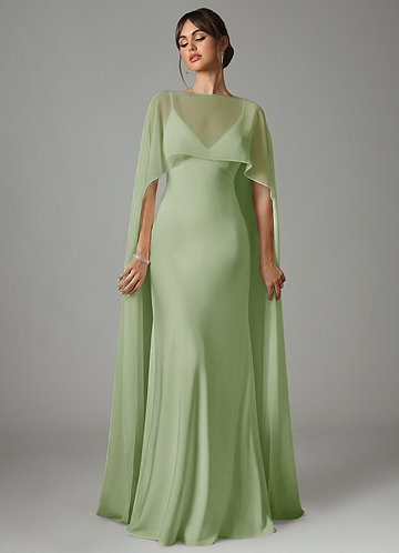 Robe Sirène Convertible en Satin extensible Épaule décolletée Vert Sauge