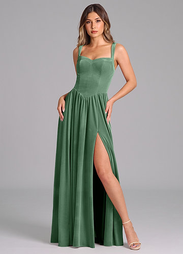 Robe Fourreau en velours Encolure en Forme de Cœur Eucalyptus