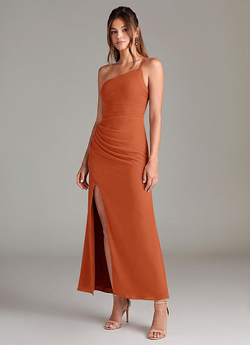 Robe Sirène en Mousseline de soie Une épaule Orange Brûlée