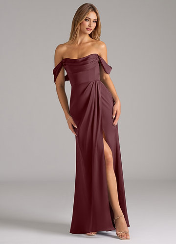 Robe Sirène en Satin extensible Épaule décolletée Cabernet