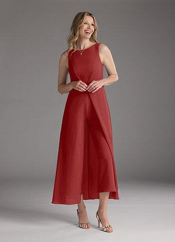 Robe Combinaison/Tailleur Pantalon en Crêpe Élastique Plissée Rouille