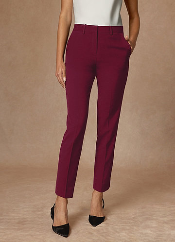 Whitney Bourgogne Pantalon habillé long performant à tissage raffiné