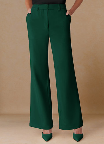 azazie Marina émeraude Pantalon droit en tissu raffiné