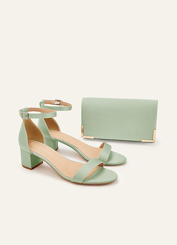 Ensemble de sandales à talons carrés en satin mat de couleur assortie et d'une pochette enveloppe