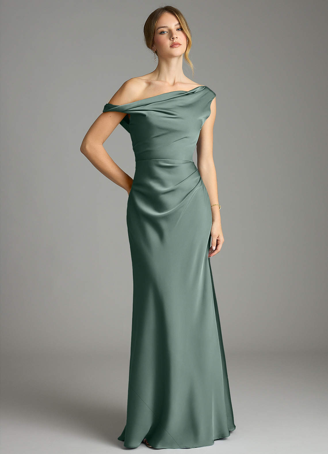 Robe Sirène en Satin extensible Épaule décolletée émeraude